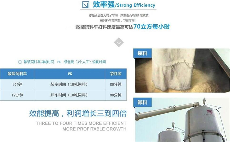 散裝飼料車(chē)的優(yōu)勢(shì): 散裝飼料的生產(chǎn)可實(shí)現(xiàn)直接生產(chǎn)直接裝車(chē),隨產(chǎn)隨出,不需要進(jìn)行提前備貨,不占用倉(cāng)儲(chǔ)設(shè)施,也不會(huì)出現(xiàn)停產(chǎn)等待拉料的現(xiàn)象,使飼料生產(chǎn)實(shí)現(xiàn)計(jì)劃管理,生產(chǎn)效率得到提升。 ★獨(dú)有倒梯形設(shè)計(jì),散裝飼料在罐體內(nèi)密封輸送,V字形罐體卸料順暢,減少飼料的耗損,保證質(zhì)量,避免污染。 ★運(yùn)輸比包裝成袋運(yùn)輸不但節(jié)省勞動(dòng)力,而且成本較低。 ★可選電動(dòng)卸料、全液壓卸料、氣卸為全自動(dòng)上料卸料,可連續(xù)作業(yè),大大提高生產(chǎn)效率。 ★罐體內(nèi)可加裝分倉(cāng),可同時(shí)運(yùn)輸多種不同類的飼料或膨人介質(zhì)。部件標(biāo)準(zhǔn)化,容易維修保養(yǎng)。 頂部進(jìn)料倉(cāng)